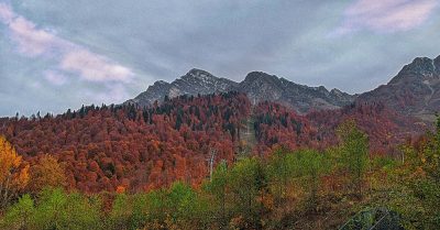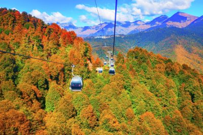 Но, конечно, самое большое впечатление произвели осенние горы, их цветовая гамма в октябре изумительна. Проезжая на фуникулере можно любоваться и любоваться цветами, словно незримый художник разрисовал деревья и склоны, придав им яркость.