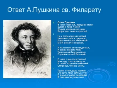 Сегодня, во дни Великого поста нельзя ни вспомнить духовные творения Пушкина по мотивам молитв «Отче наш» , Ефрема Сирина и его ответ св. Филарету.