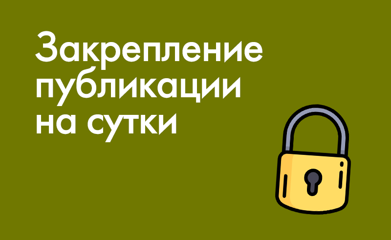 Закрепление любой вашей публикации в начале списка на главной странице и в тематическом разделе на 24 часа.