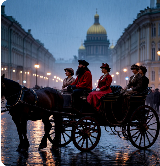 Невским ночным силуэты карет ,