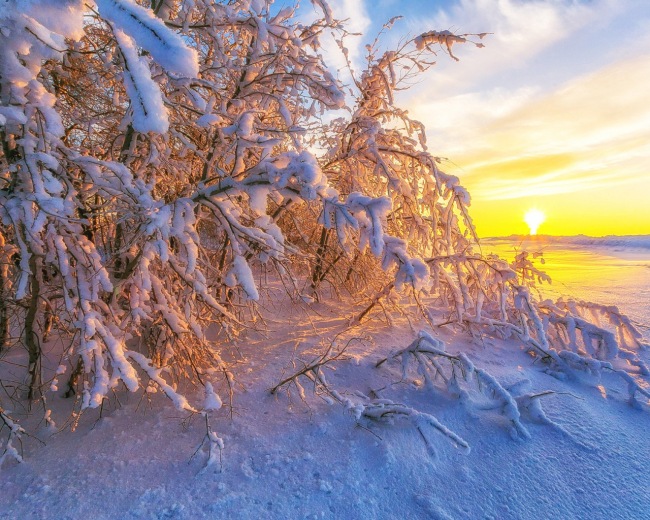 Застывший мир заснеженных деревьев,