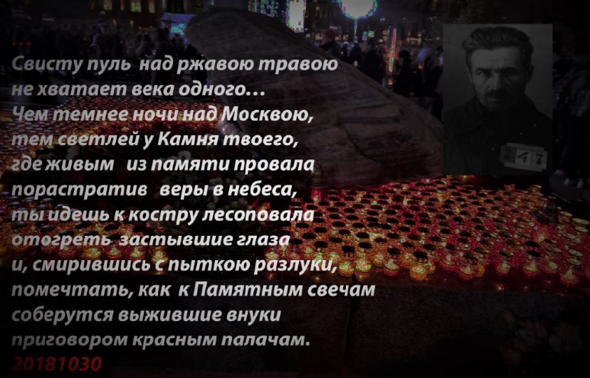 Традиция публичного прочтения имен репрессированных москвичей у Камня началась в 2007 г. Акция ежегодно проходит 29 октября — в канун государственного Дня памяти жертв политических репрессий( с 1991г.)