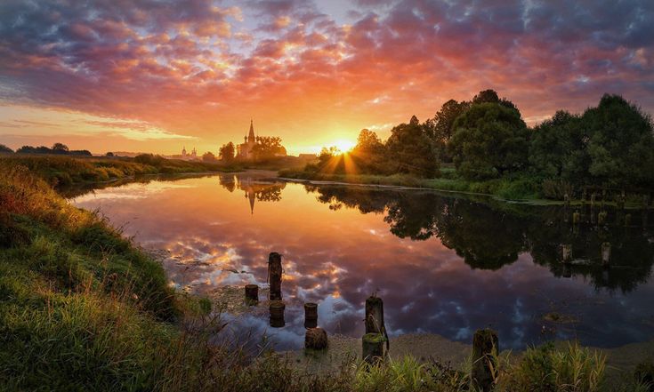 Постепенно речка огонёчки зорьки,