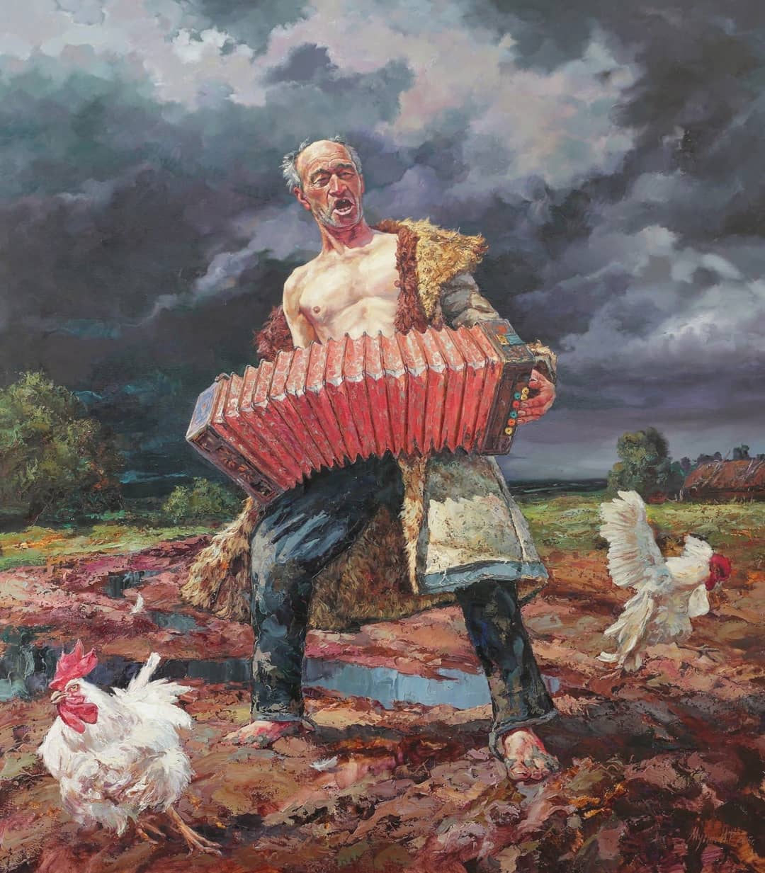 Тут бы живую гармошку да стакан для разгону… Ирик Мусин известнейший художник Казани с мощными сельскими пейзажами и сильными психологическими портретами.