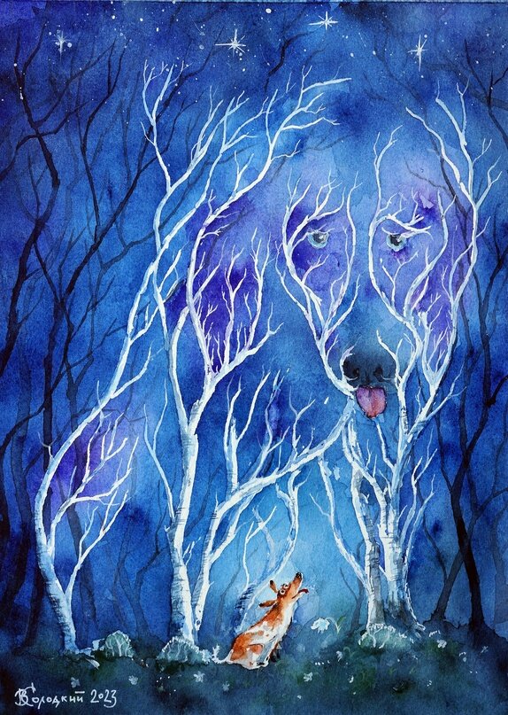Однажды ночью заблудился пёс в лесу,