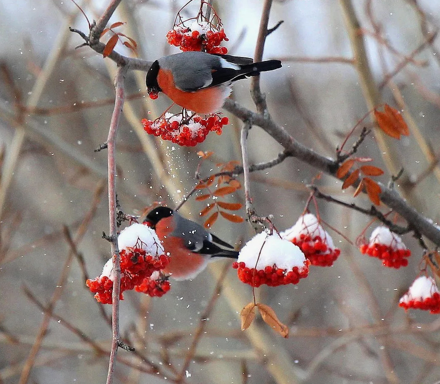 Красные грудки летают в окне,