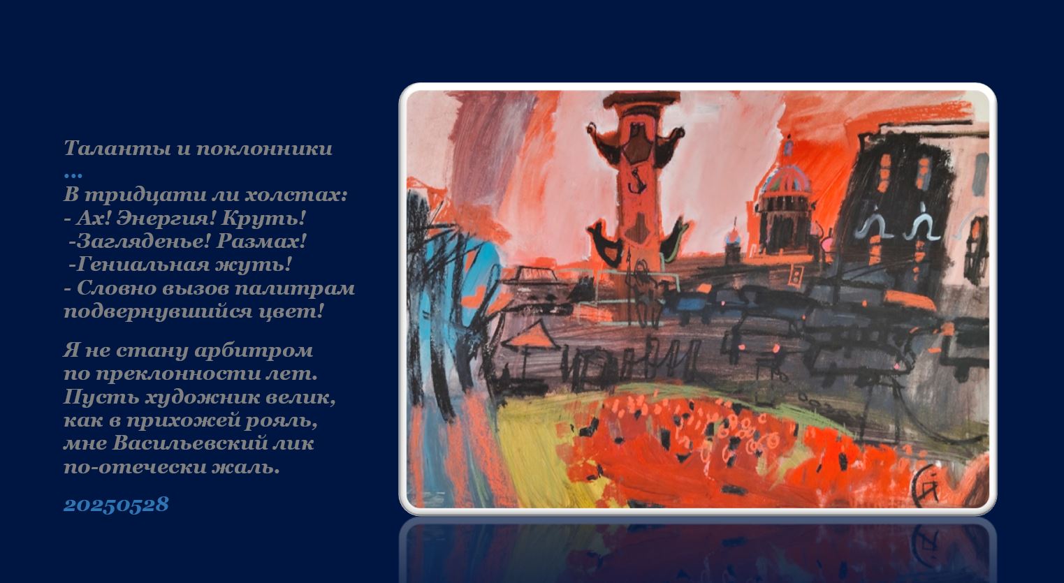 Чем — то мне напомнило Вознесенского или Пастернака!