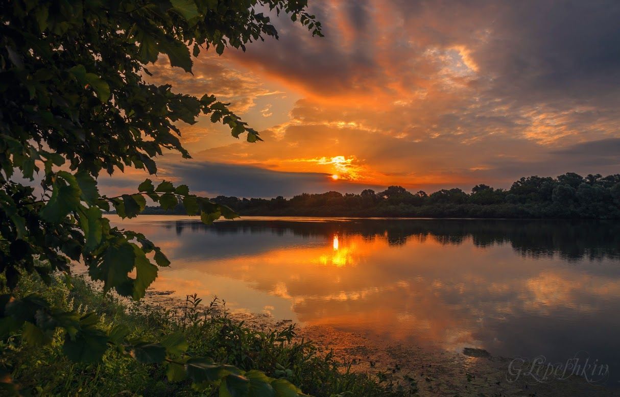 Над сонным берегом реки,